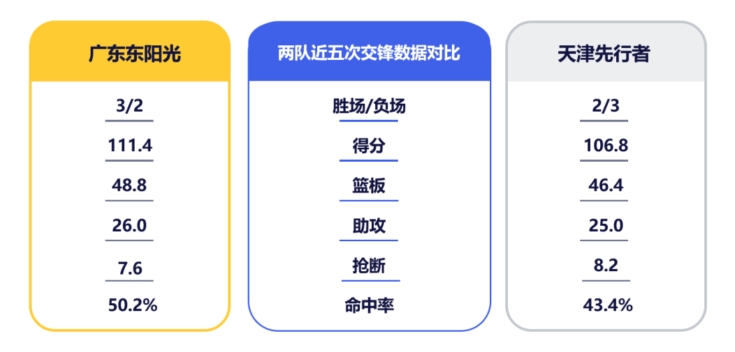 天津队的进攻效率位列第四、场均得分第五,场均助攻也进入前八。首回合并未出战的哈姆雷特以场均23.2分高居联盟第二,更有过单场狂轰40分的亮眼表现;林庭谦场均可贡献19.1分,与哈姆雷特单场可联手送出两位数以上助攻;詹姆斯在队多年,已成为球队进攻体系的关键支点。广东队此战仍需阻断对方核心球员的配合,压缩其出手空间。而在上次交手中,雷诺兹高效砍下全队最高的23分,谷泽浴也有15分进账,对此二人的防守部署也需强化。