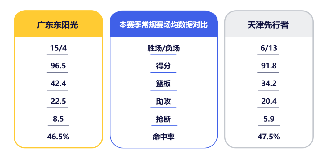天津队的进攻效率位列第四、场均得分第五,场均助攻也进入前八。首回合并未出战的哈姆雷特以场均23.2分高居联盟第二,更有过单场狂轰40分的亮眼表现;林庭谦场均可贡献19.1分,与哈姆雷特单场可联手送出两位数以上助攻;詹姆斯在队多年,已成为球队进攻体系的关键支点。广东队此战仍需阻断对方核心球员的配合,压缩其出手空间。而在上次交手中,雷诺兹高效砍下全队最高的23分,谷泽浴也有15分进账,对此二人的防守部署也需强化。